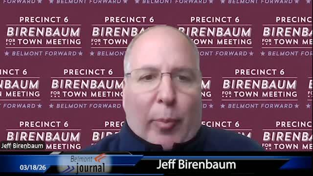 + Jeff Birenbaum speaks out about his candidacy for Town Meeting member, Precinct 6 in the upcoming town election, April 7, 2026.